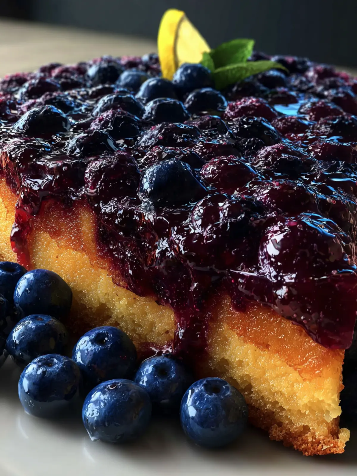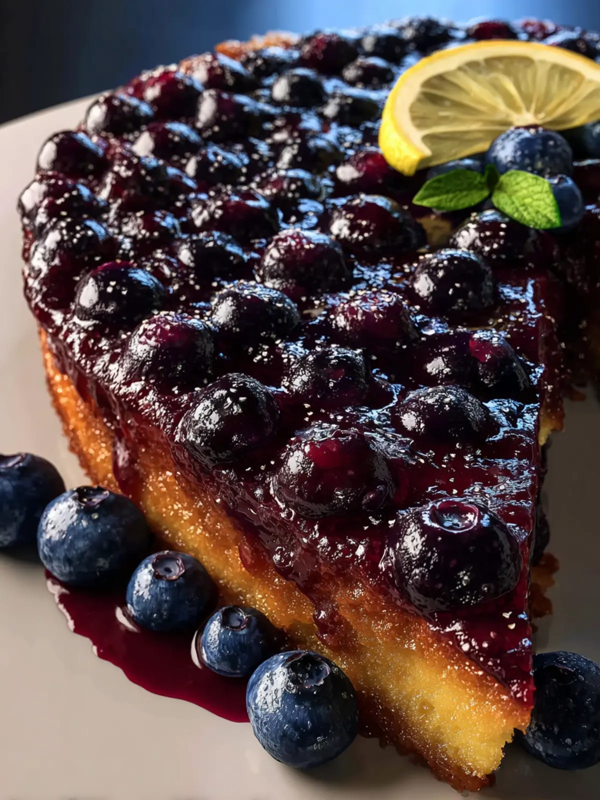 - Allow the cake to cool slightly before slicing. Serve warm or at room temperature, garnished with additional fresh blueberries if desired.