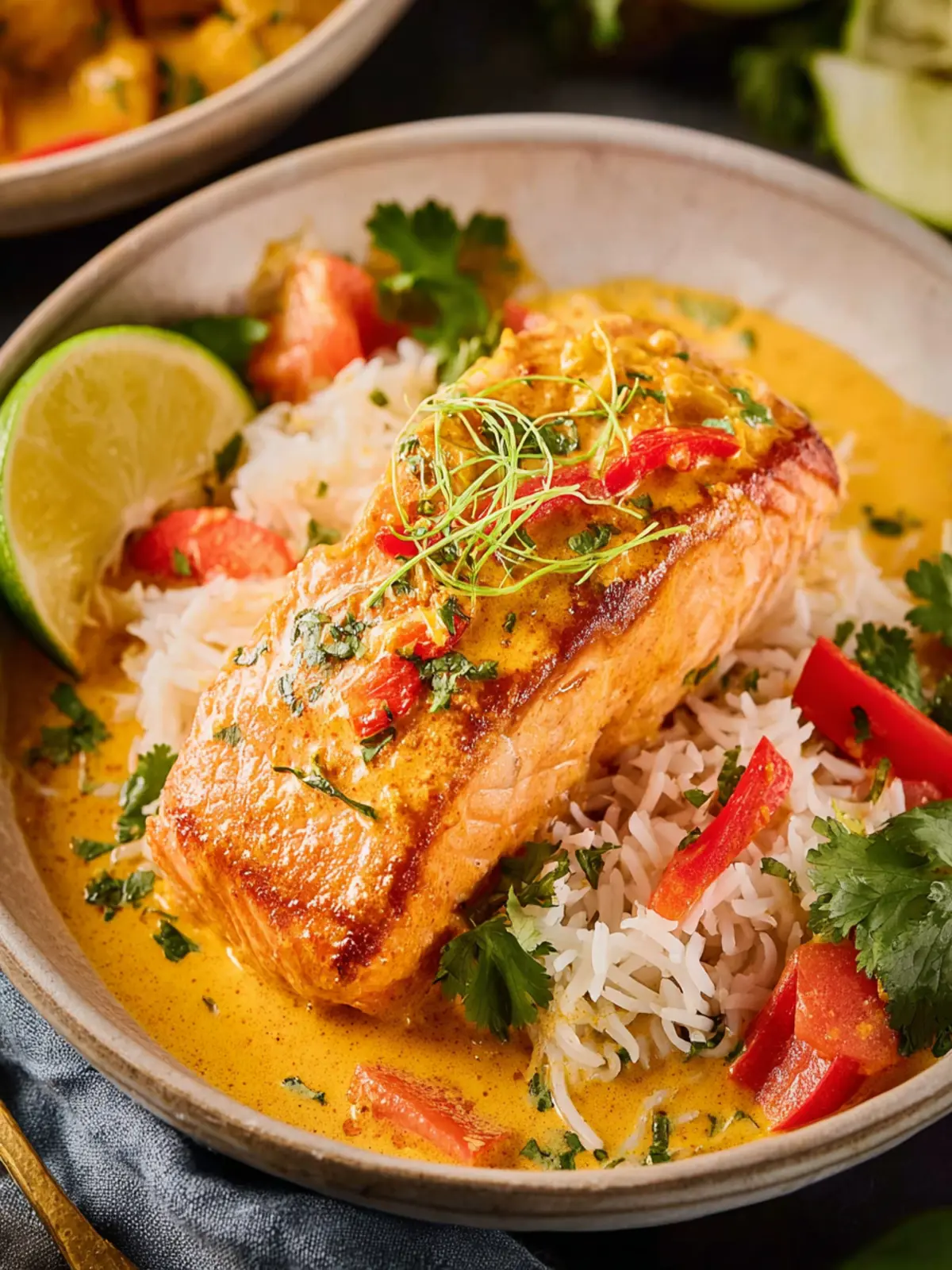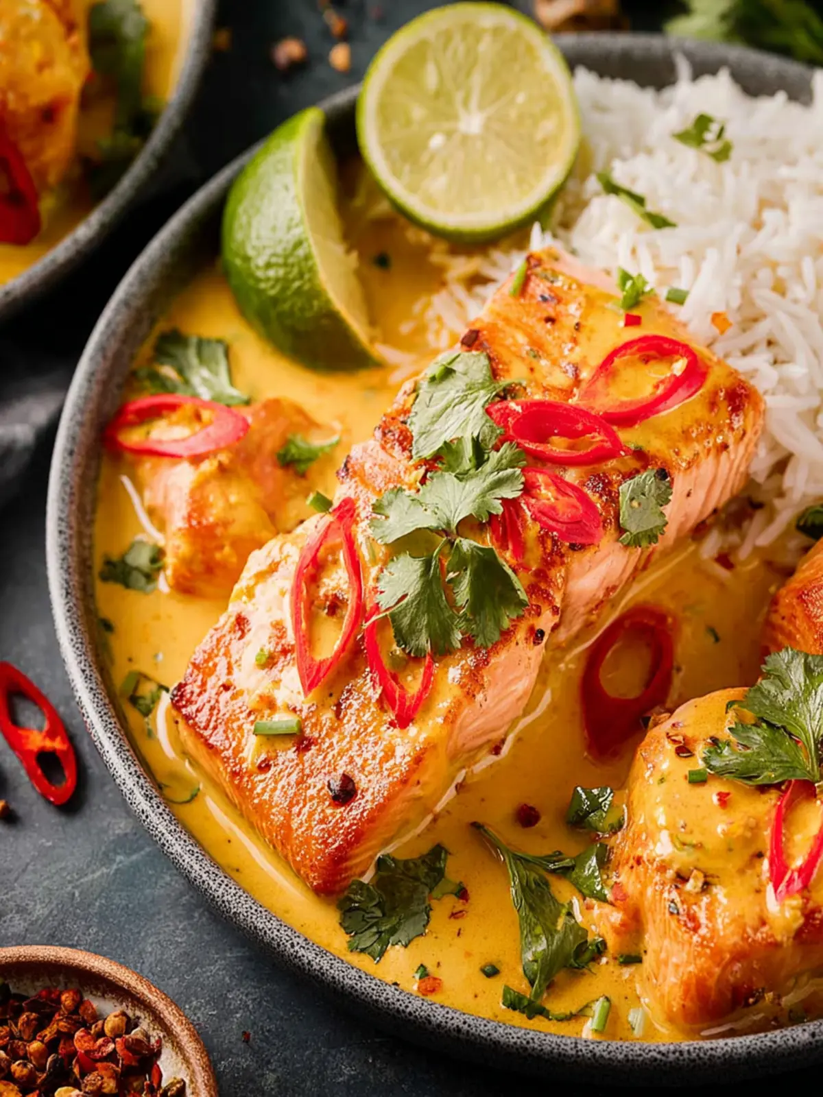 A delicious salmon dish cooked in a creamy coconut curry sauce.