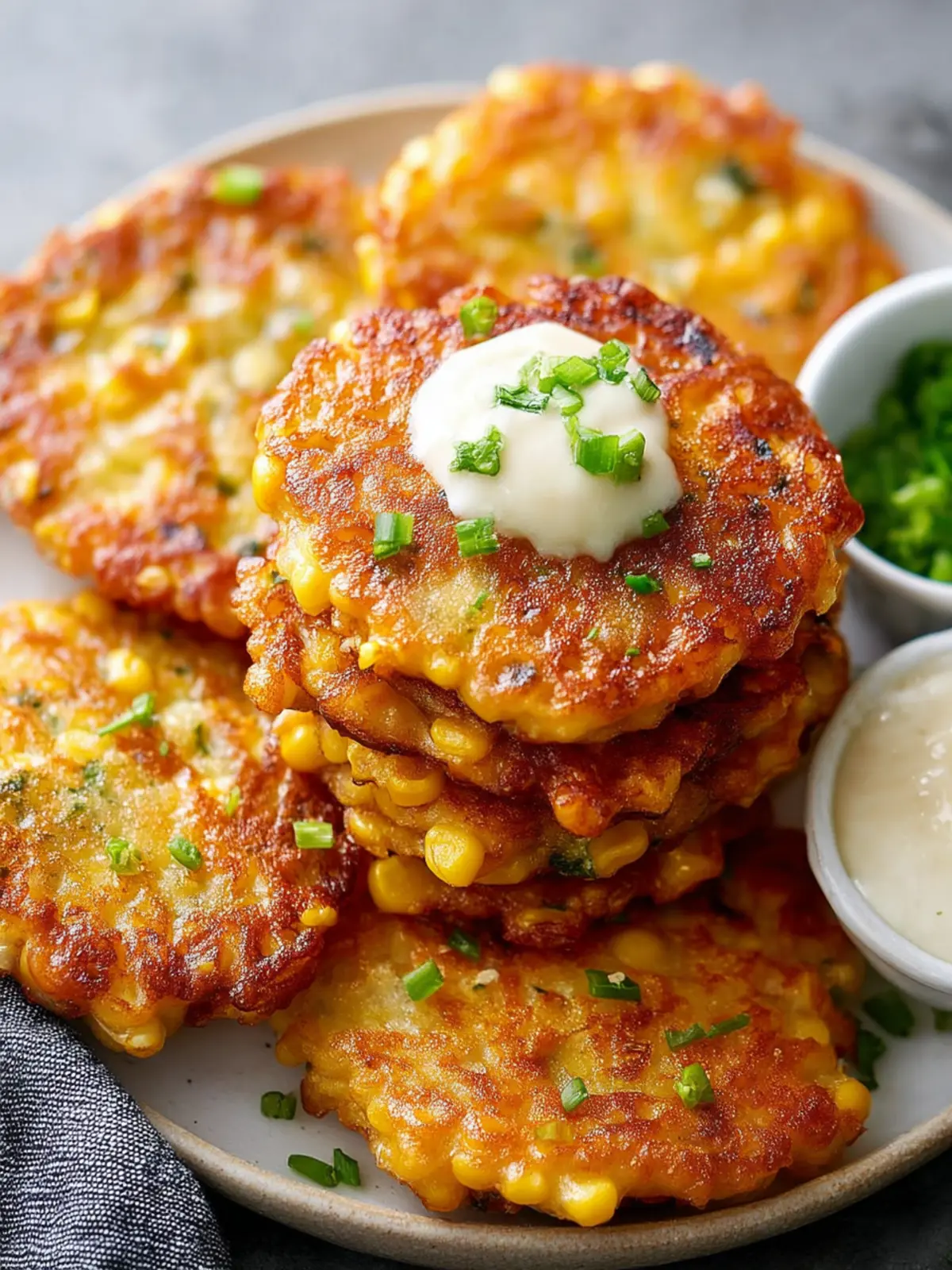 Delicious corn fritters that are crispy on the outside and soft on the inside, perfect as a snack or appetizer.