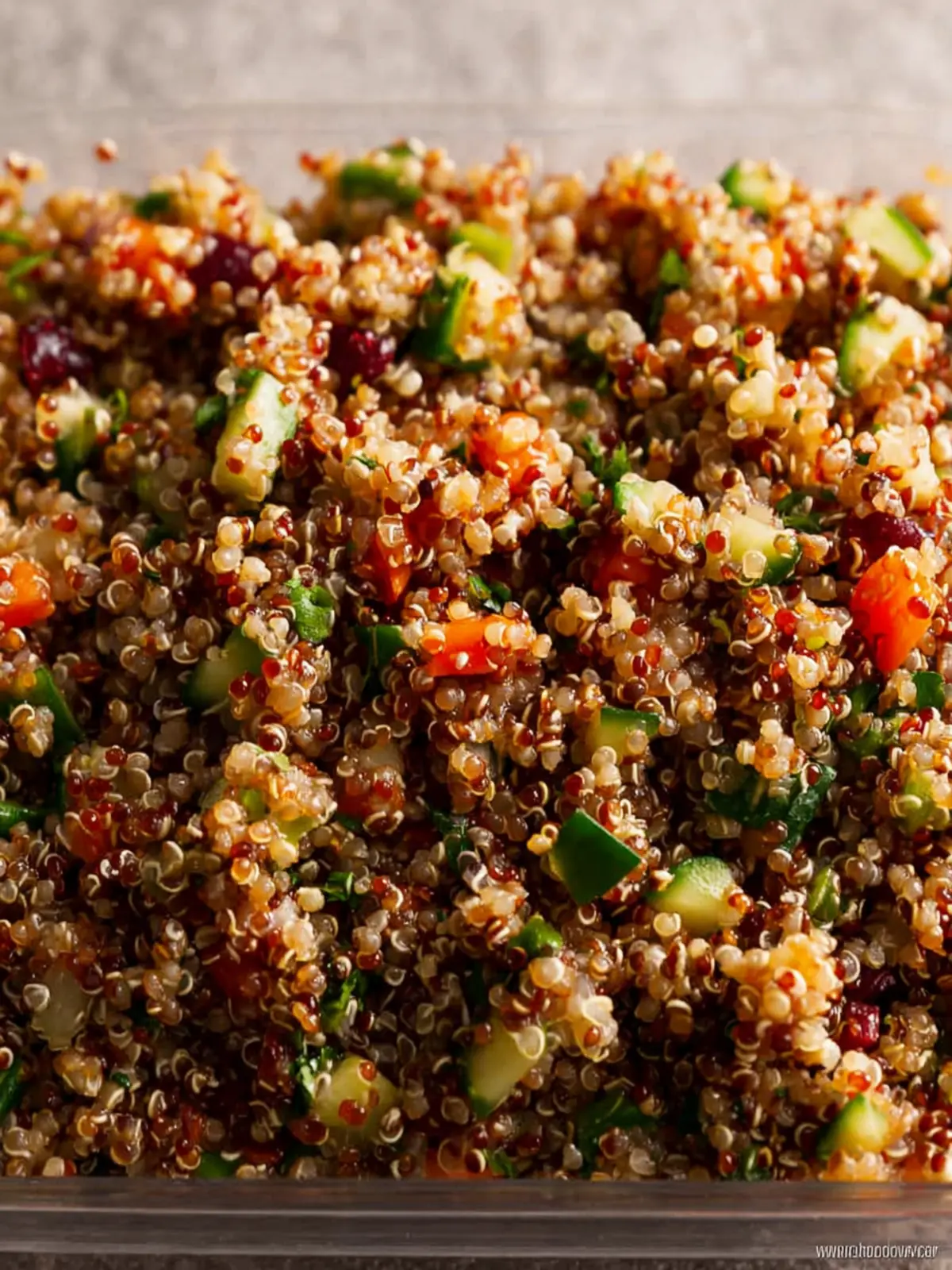 Balanced Flavors: The salad’s flavor profile is both refreshing and satisfying. The combination of the nutty quinoa, crisp vegetables, and the zing of lemon dressing creates a delightful balance that excites your palate.