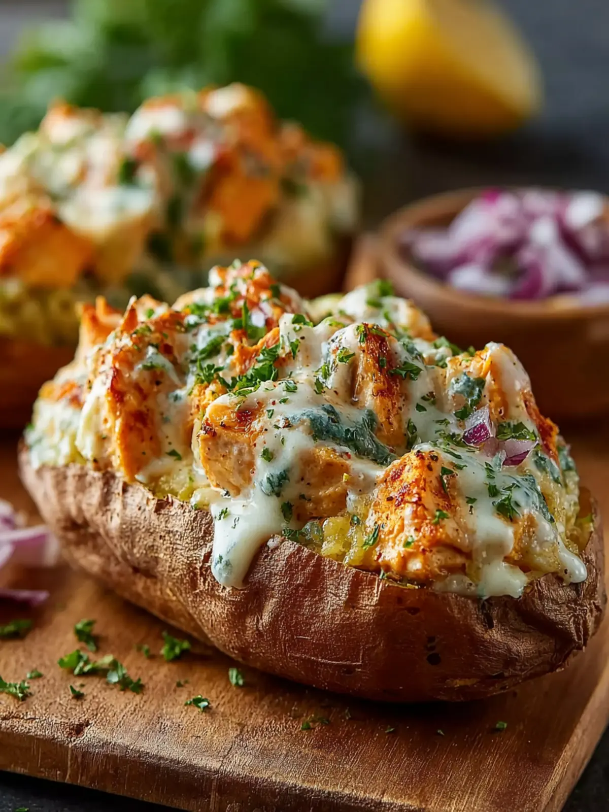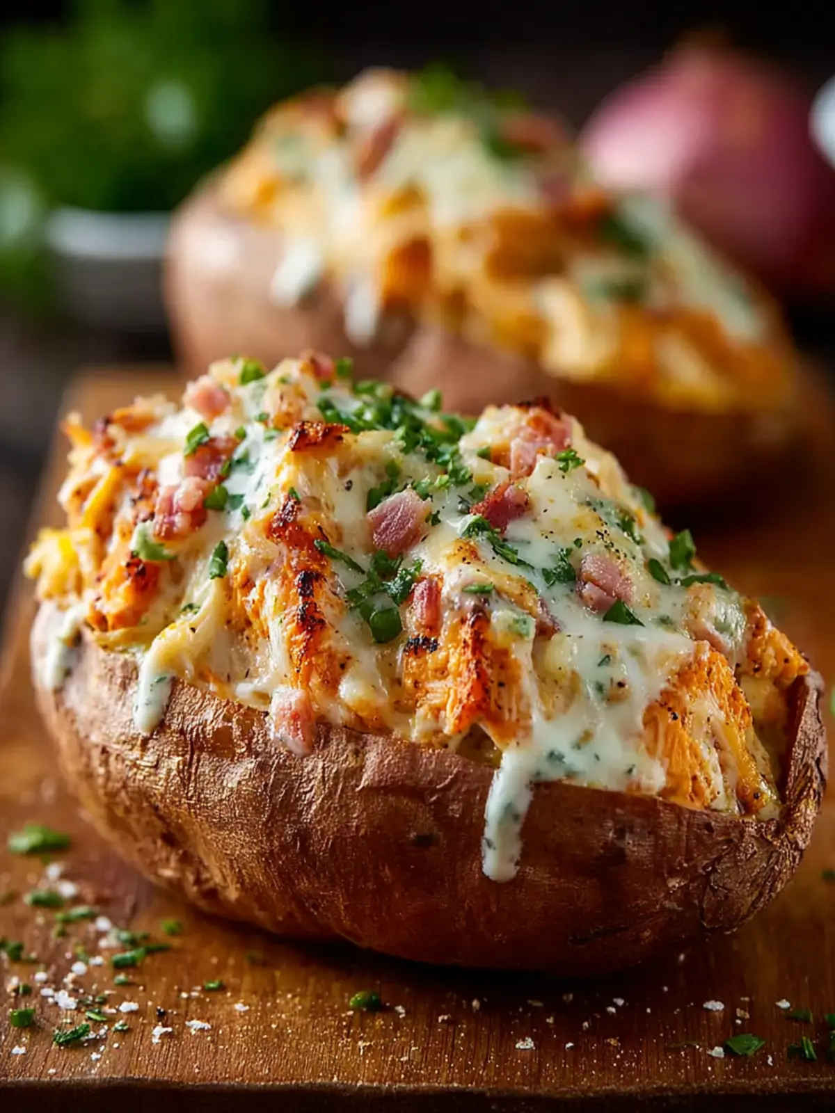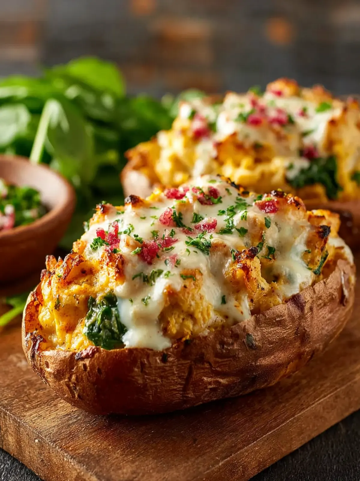 Introduction to Creamy High Protein Chicken Pot Pie Stuffed Sweet Potatoes