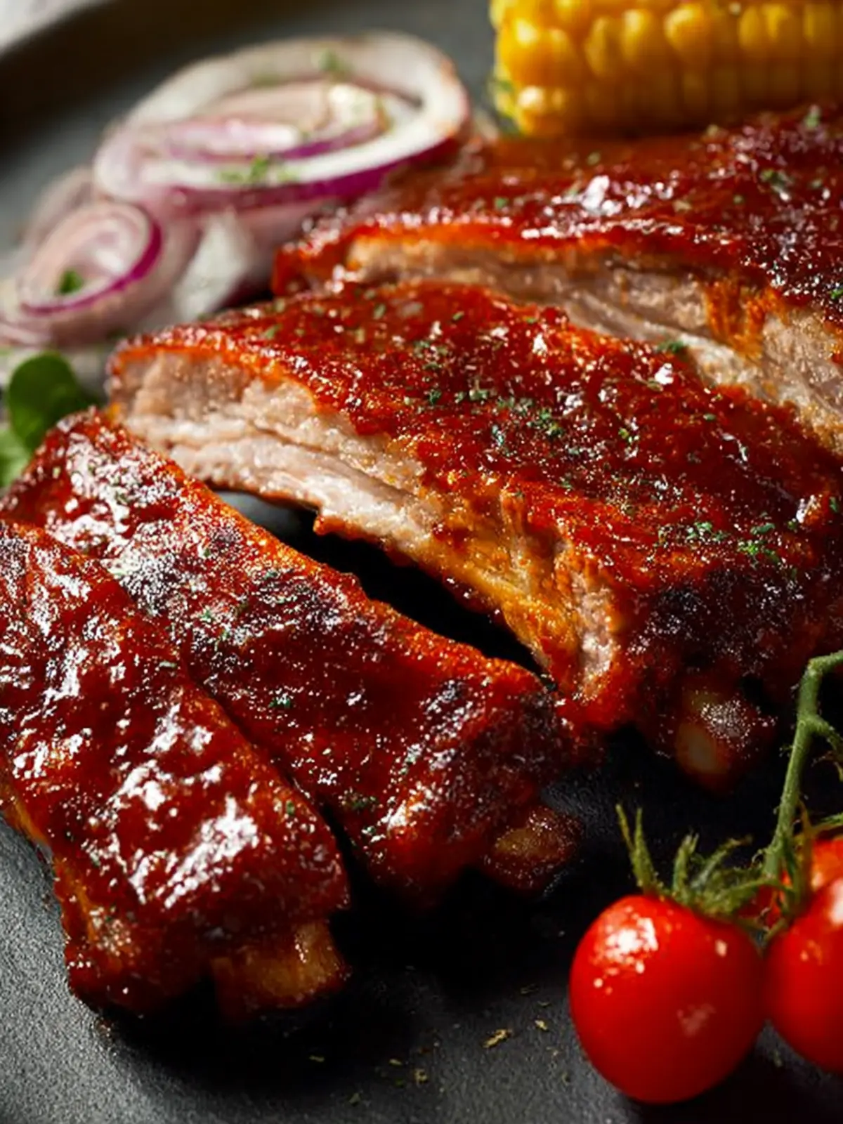 Deliciously tender baby back ribs slathered in BBQ sauce, perfect for your next gathering.