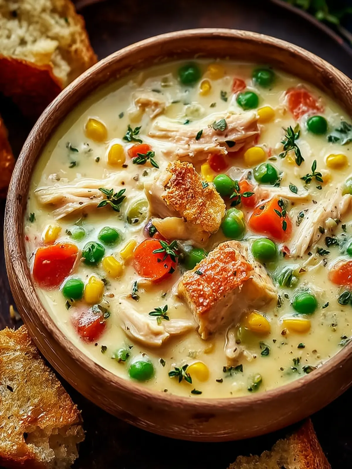 A hearty and creamy chicken vegetable soup perfect for any day.