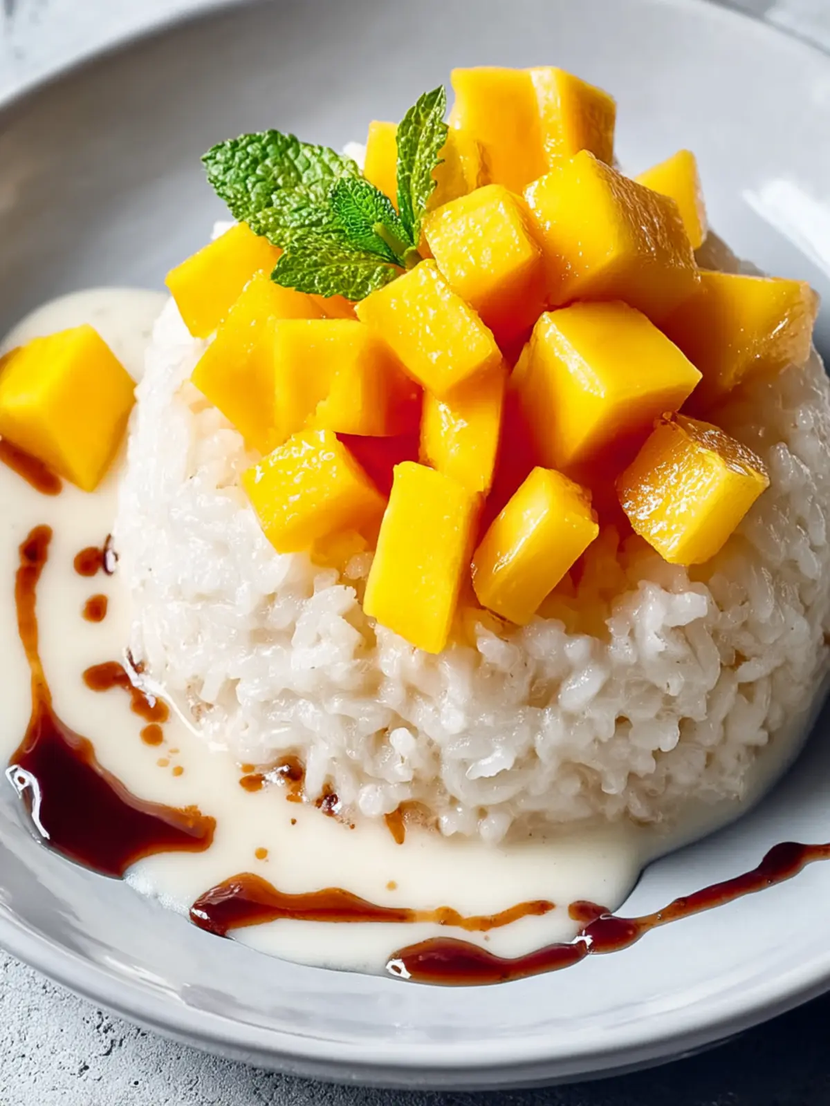 A delicious dessert made with glutinous rice, coconut milk, and fresh mango.