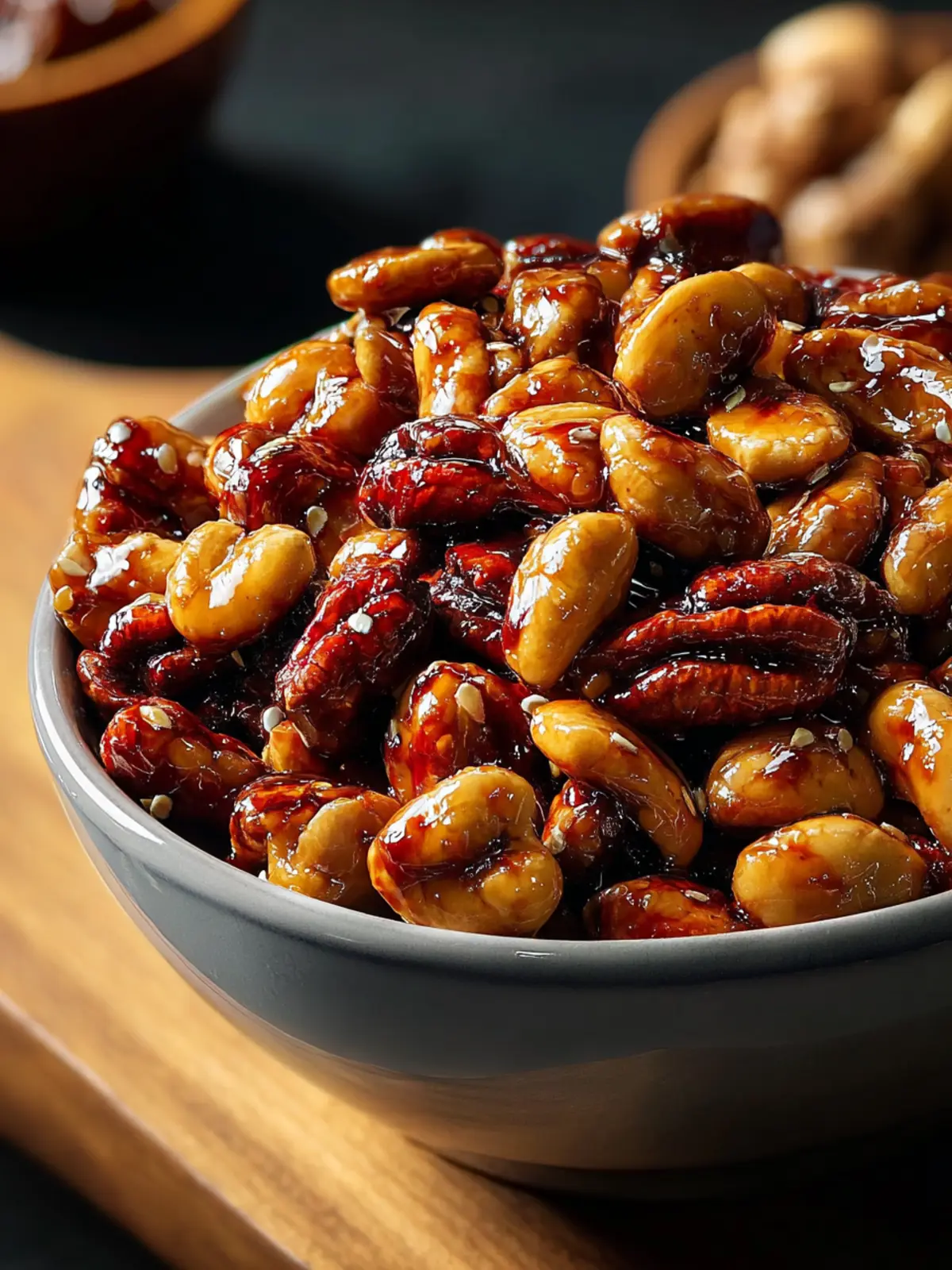 A delicious blend of nuts coated in a sweet and savory glaze.