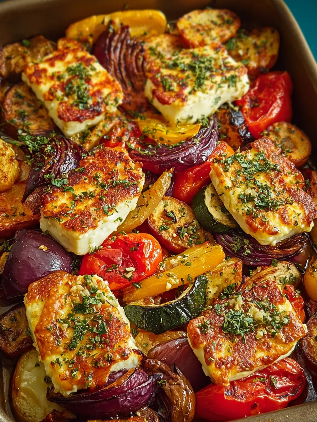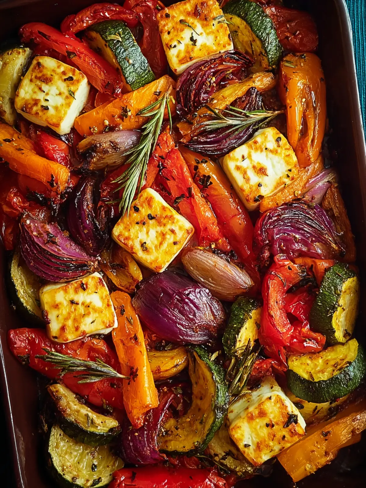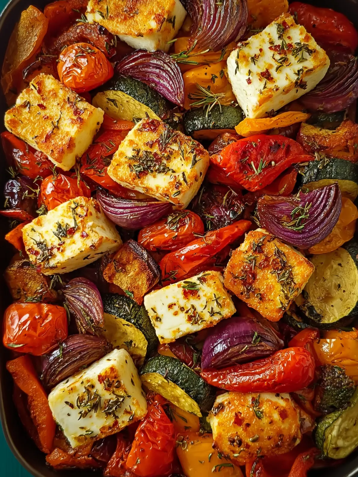 This delicious roasted halloumi and vegetable dish is a perfect blend of flavors and textures, great as a side or a main.