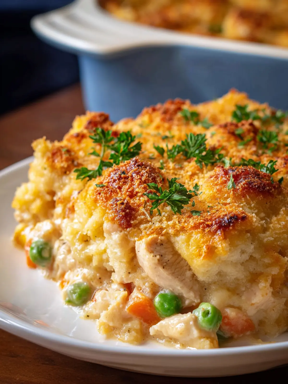 Flavor Complexity: By blending tender chicken with the sweetness of a biscuit topping, each bite reveals a new layer of flavor that keeps everyone reaching for more. It’s comfort food at its finest, harmonizing savory and mildly sweet elements in a delightfully unexpected way.