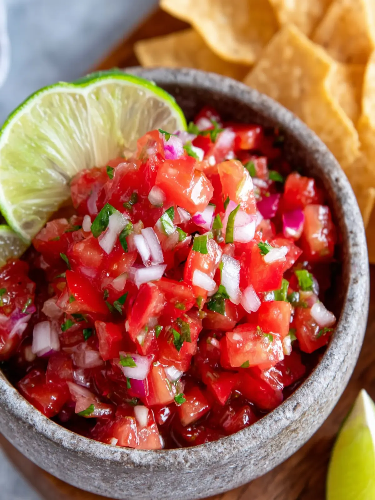 A vibrant and refreshing salsa made with ripe tomatoes and fresh ingredients, perfect for chips or as a topping.