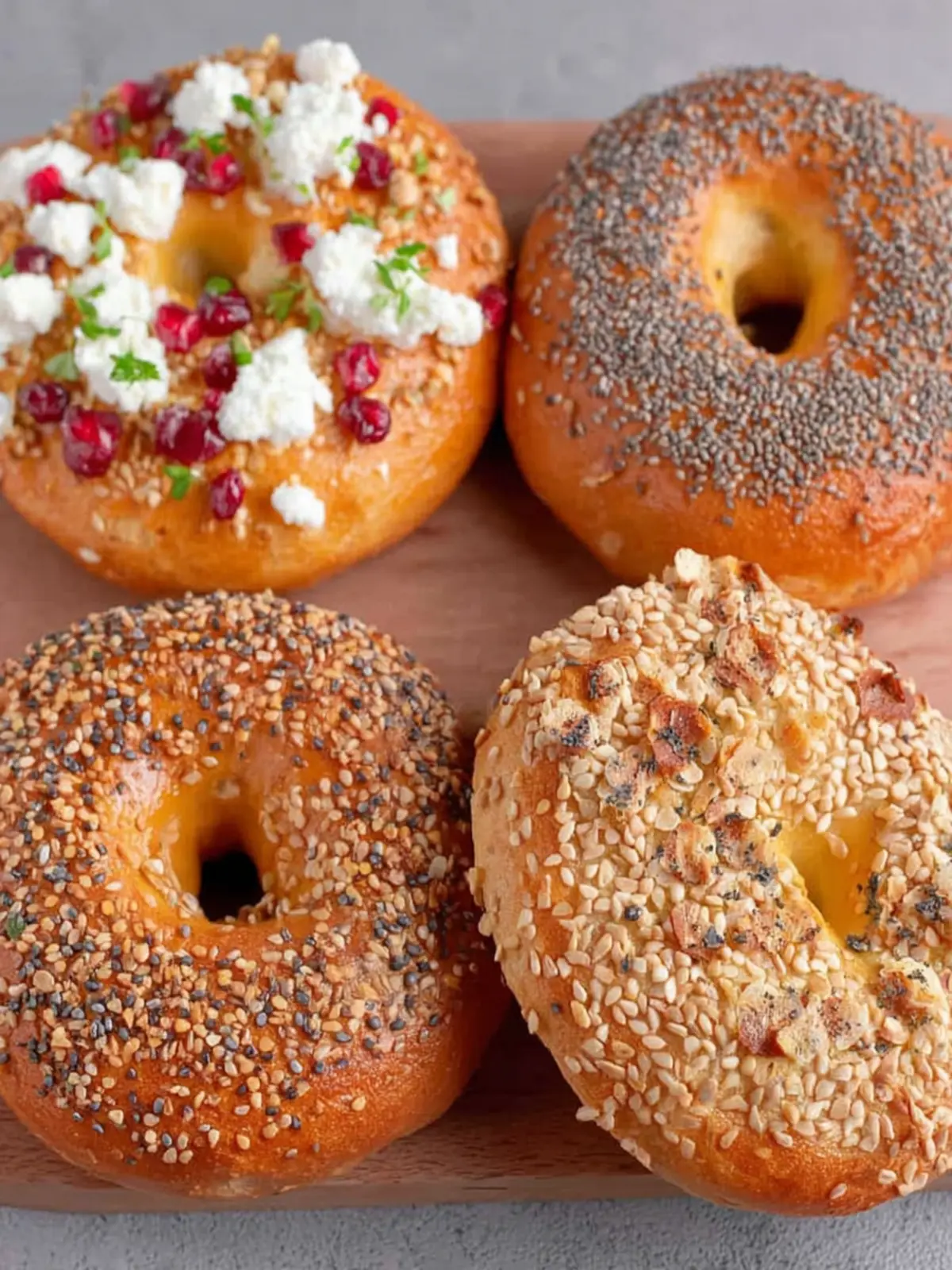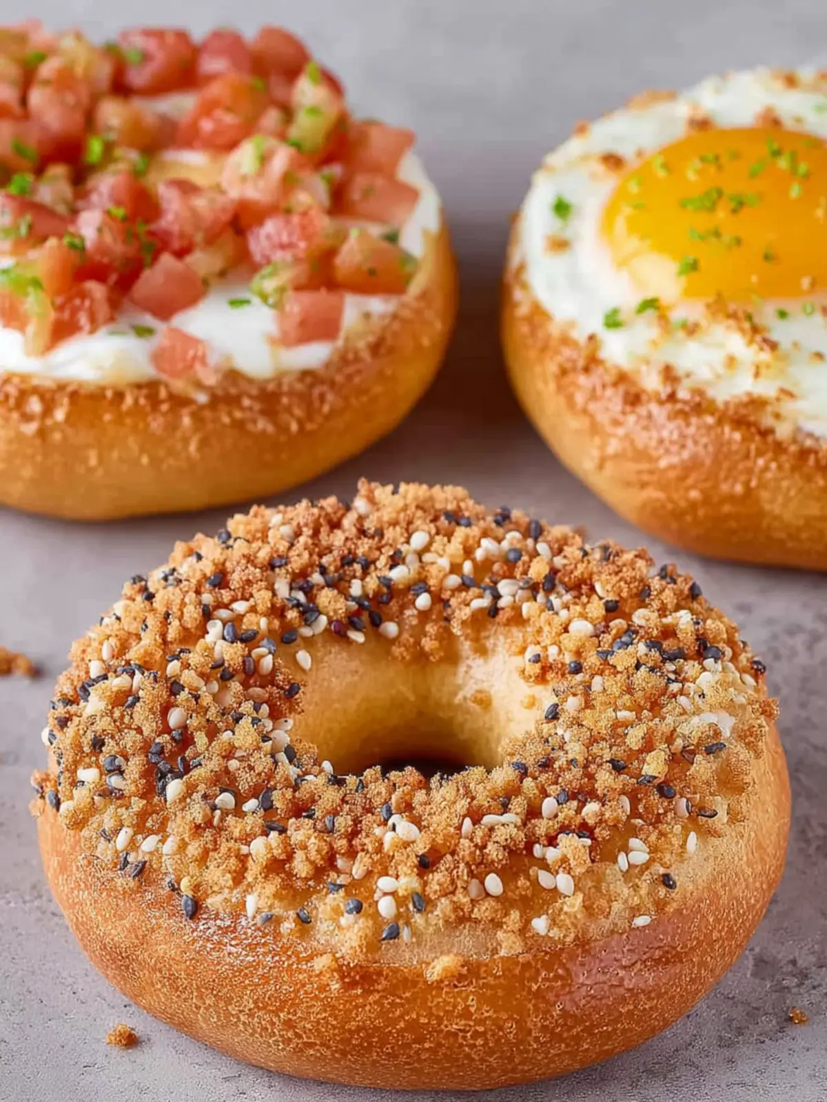 Everything Bagel: Embrace the classic by topping your bagels with a mix of sesame seeds, poppy seeds, dried onion, and garlic. This blend brings texture and a burst of flavor in every bite.