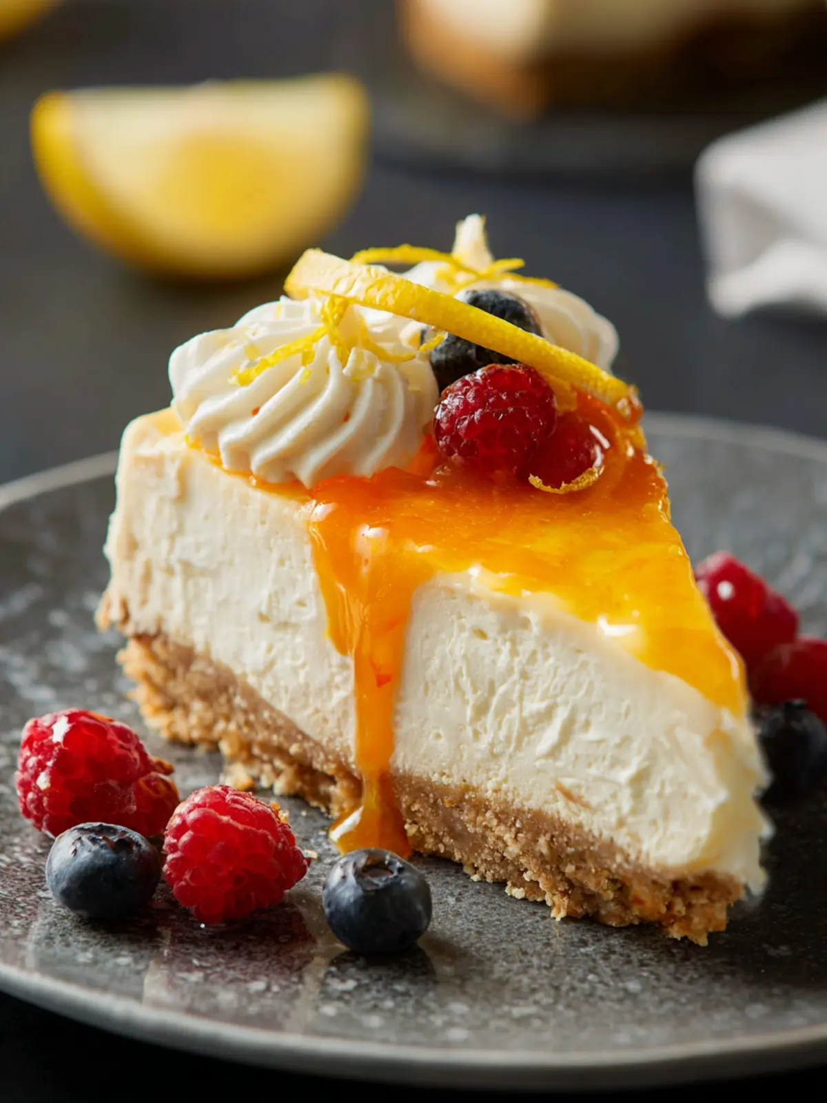 A delicious lemon protein cheesecake that is rich and creamy, perfect for a healthy dessert option.