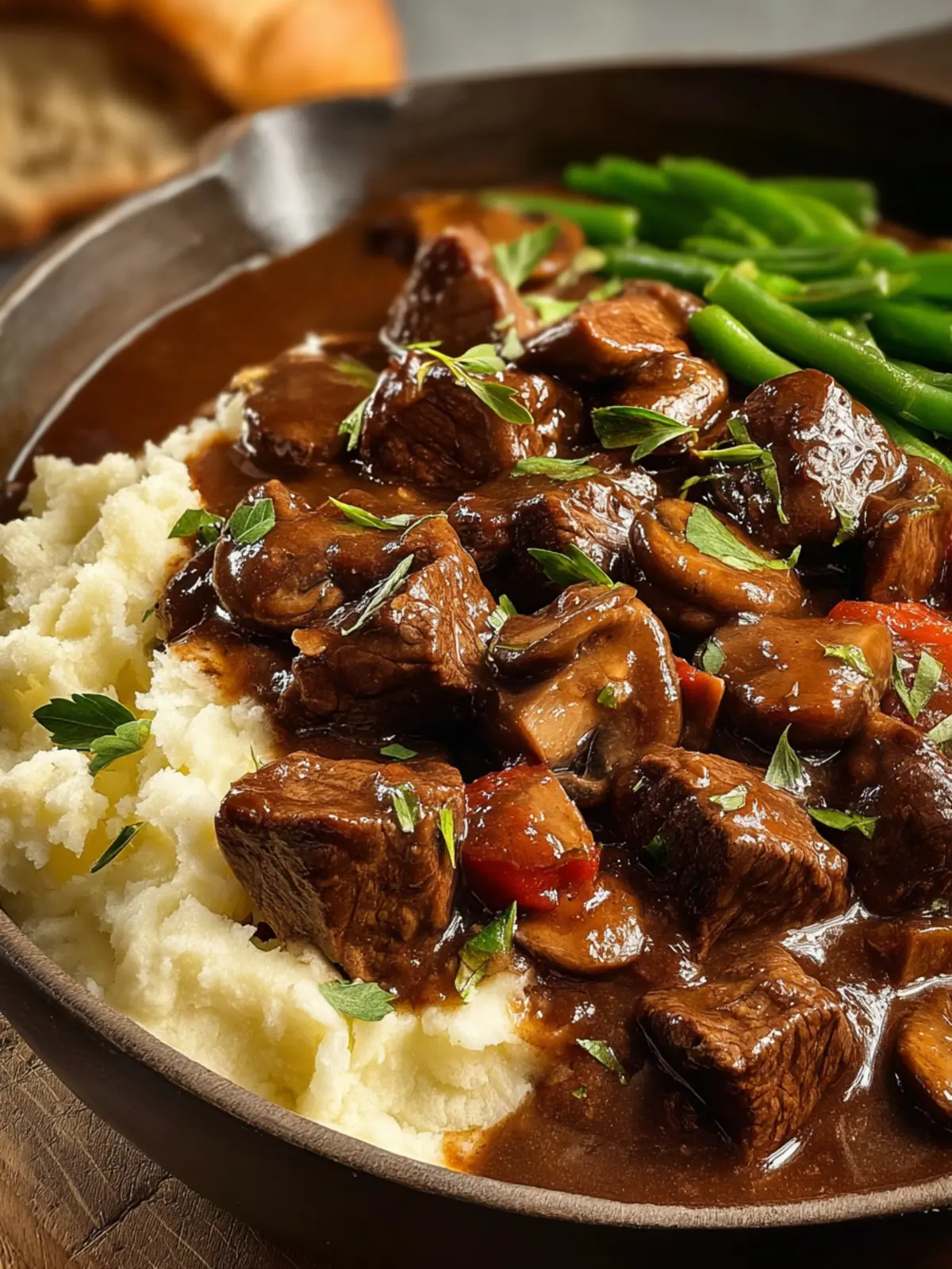 Mushrooms: To enhance the umami factor, mushrooms are a must. They absorb the gravy and contribute an earthy richness that elevates the entire dish.