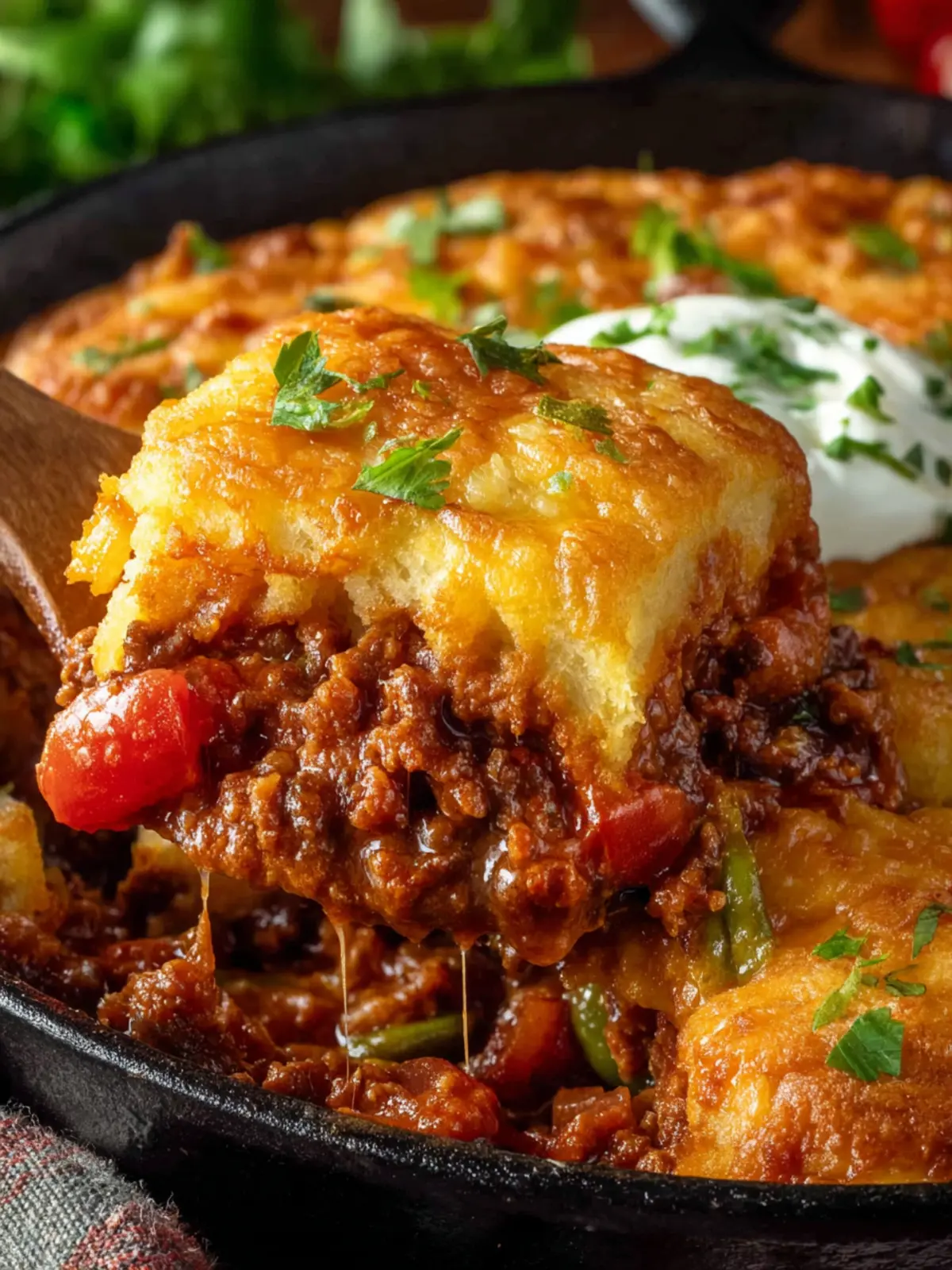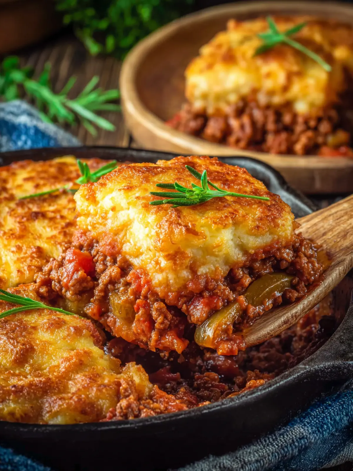 Bread Topping: Biscuits or cornbread mix act as a simple yet satisfying topping, creating a nice contrast with the savory base. It bakes up golden and slightly crispy, making each bite delightful.