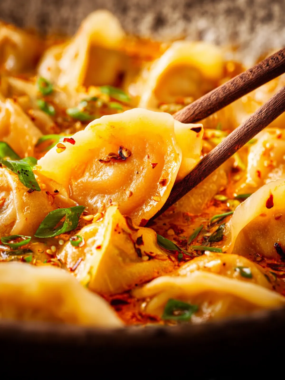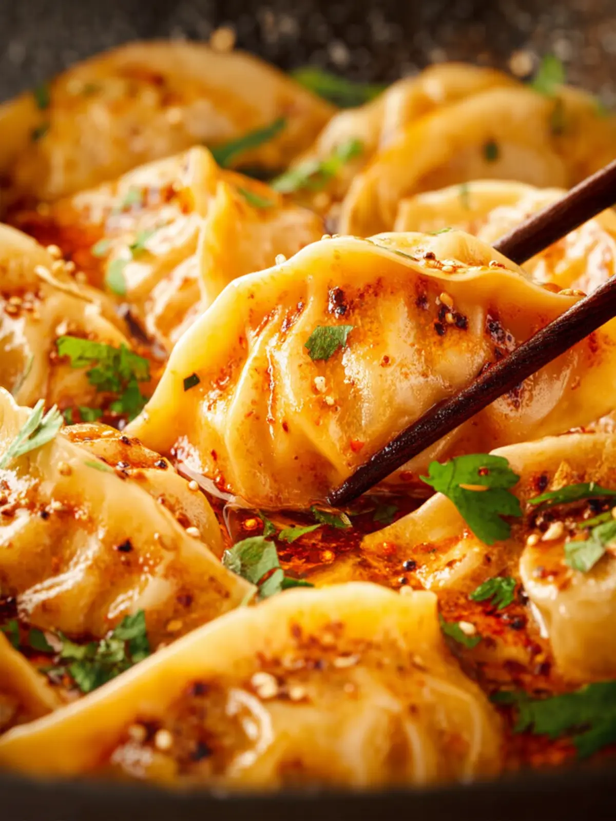 Scallions: Fresh scallions sprinkled on top not only add a pop of color but also a fresh crunch that contrasts perfectly with the warm, comforting dumplings.